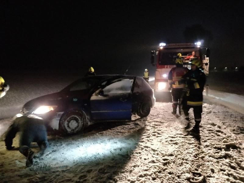 Auf der schneeglatten Fahrbahn verlor ein PKW Lenker aus bisher unbekannter Ursache die Kontrolle über das Fahrzeug und landete anschließend im angrenzenden Graben.