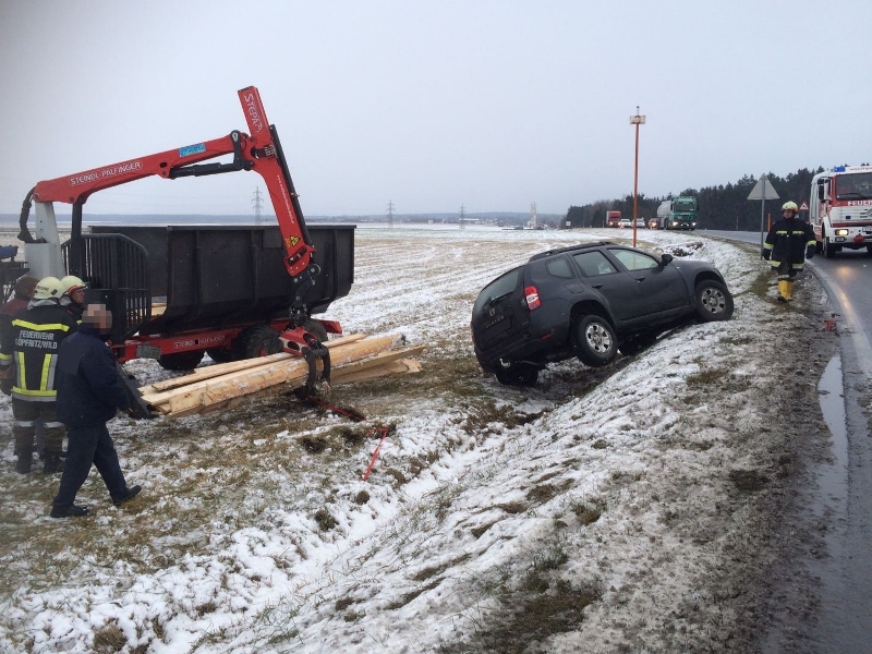 Bei der Unfallstelle angekommen, konnte man nach der Absicherung der Unfallstelle direkt mit der Bergung des PKWs beginnen. Unter Zuhilfenahme eines Rückewagens konnte man die Ladung des Anhängers umladen und anschließend den PKW aus seiner misslichen Lage befreien. Der unverletzte Lenker setzte anschließend seine Fahrt fort.