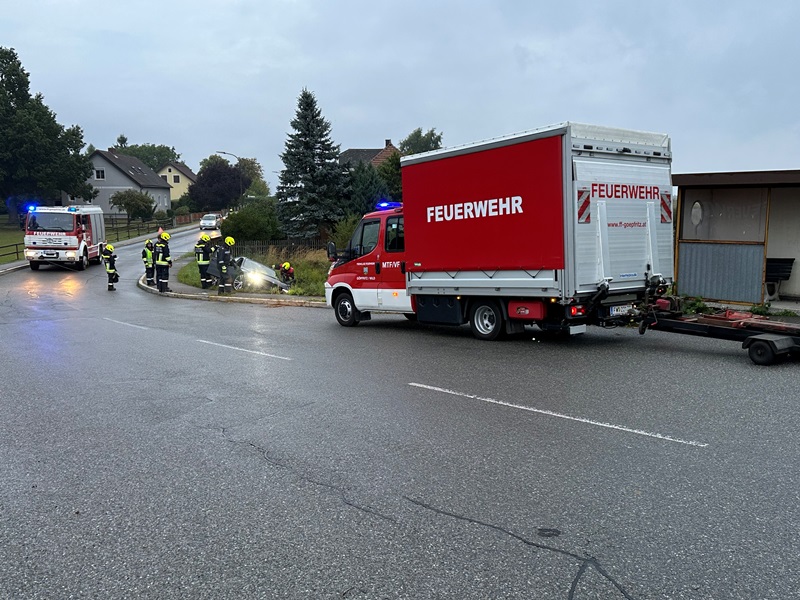 Göpfritz/Wild - Die Freiwillige Feuerwehr Göpfritz/Wild wurde am 14. September 2023 um 06:27 Uhr zu einer PKW-Bergung auf der Raabserstraße kurz nach der Eisenbahnbrücke im Bereich der Bushaltestelle alarmiert.