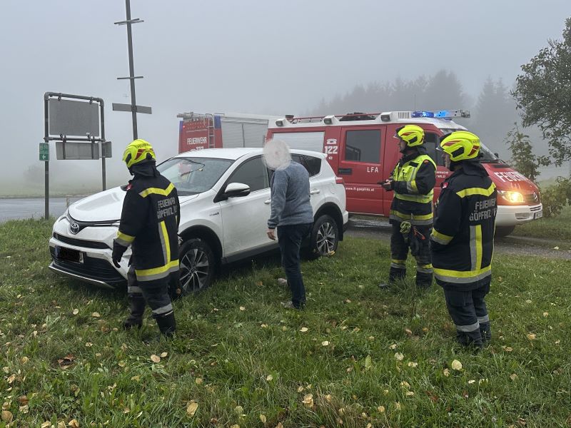 Nach dem Eintreffen an der Einsatzstelle wurde diese erkundet und entsprechend abgesichert. Nach Rücksprache mit dem Fahrzeuglenker (nicht verletzt) wurde das leicht beschädigte Fahrzeug aus dem Grünstreifen herausmanövriert und zu einem Abstellplatz begleitet (es herrschte starke Sichteinschränkung durch Nebel).