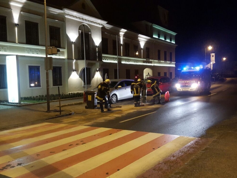 Nach einem Auffahrunfall zweier PKWs flossen Betriebsstoffe aus, weshalb ein Fahrzeuglenker die Feuerwehr mittels Notruf alarmierte.