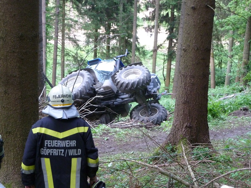 Ein Forstarbeiter ist bei Holzschlägerungsarbeiten im steilen Gelände mit seinem Traktor verunglückt und wurde unter dem Fahrzeug eingeklemmt.