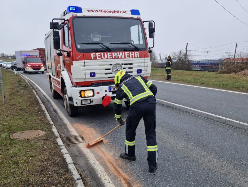 Schadstoffeinsatz und Fahrzeugbergung auf der LB2Göpfritz/Wild - Die Freiwillige Feuerwehr Göpfritz/Wild wurde am 30. März 2026 um 09:32 Uhr mittels stillem Alarm zu einem Schadstoffeinsatz (Betriebsmittelaustritt) auf der LB2 in Fahrtrichtung Scheideldorf (kurz nach der Bahnunterführung) alarmiert.