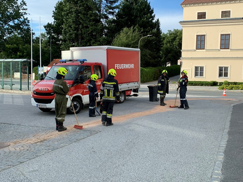 Nach einem technischen Defekt an einem Fahrzeug traten mehrere Liter Treibstoff aus und verteilten sich auf einer Länge von ca. 20 Meter.