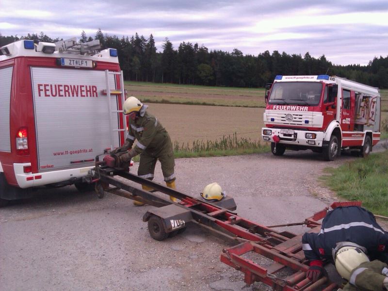 Göpfritz/Wild - Die Freiwillige Feuerwehr Göpfritz wurde am Freitag, dem 18. September 2015 um 07.54 Uhr mittels stillem Alarm zu einer Fahrzeugbergung auf der LB2 in Richtung Horn alarmiert.