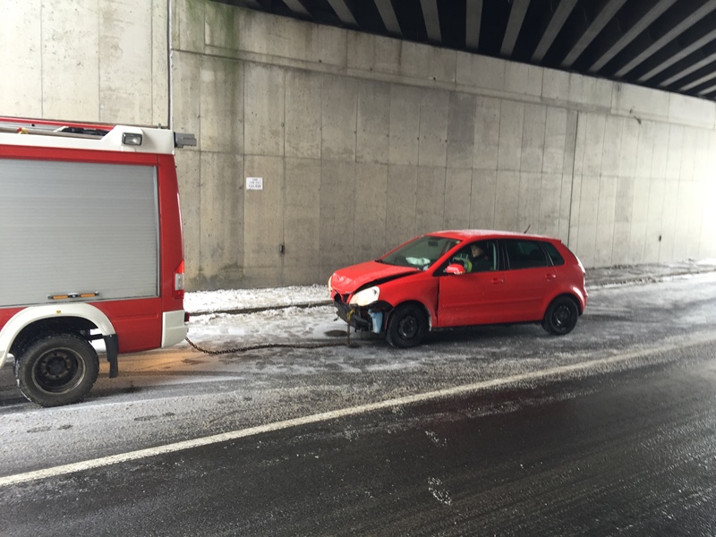 Eine Fahrzeuglenkerin ist bei winterlichen Fahrbahnverhältnissen mit ihrem Fahrzeug im Bereich der Bahnunterführung gegen eine betonierte Einfassung geschlittert und anschließend wieder auf die gegenüberliegende Fahrbahn geschleudert worden, wo sie dann auch zum Stillstand gekommen ist.