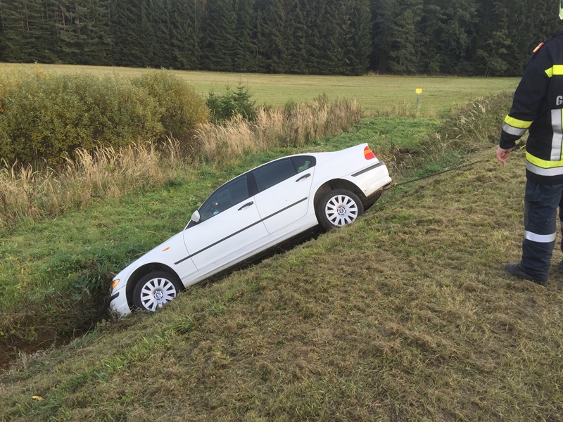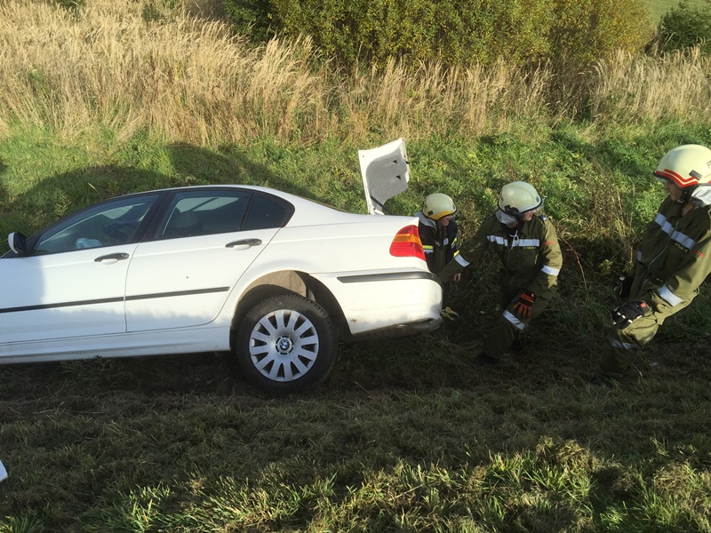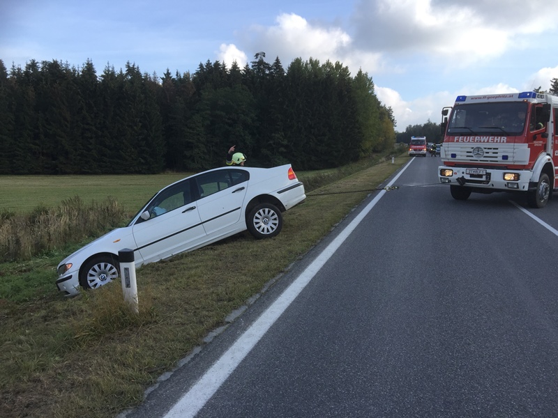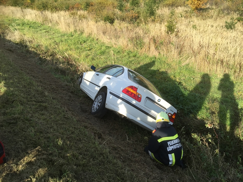 Ein Fahrzeuglenker ist aus bisher unbekannter Ursache von der Fahrbahn abgekommen, rutschte eine Böschung hinunter und stieß in einen Graben.