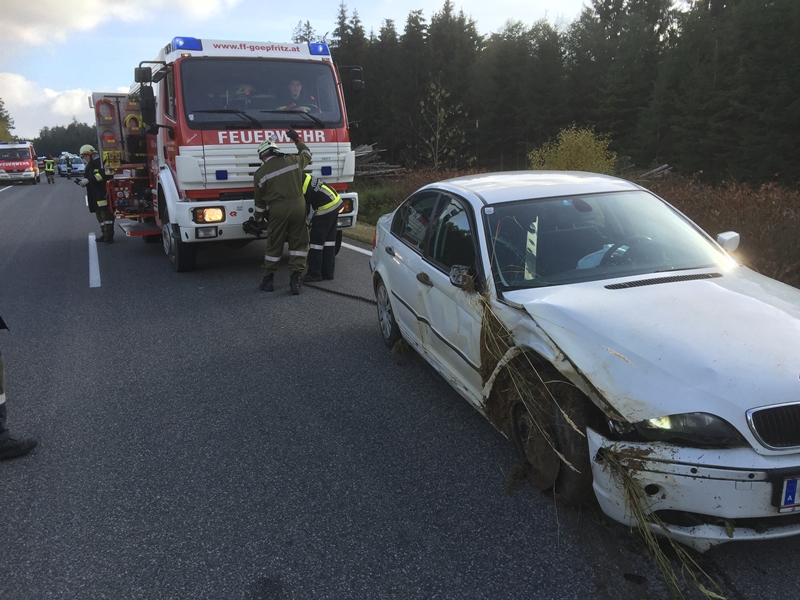 Göpfritz/Wild - Die Freiwillige Feuerwehr Göpfritz wurde am Montag dem 26. Oktober 2015 um 13.23 Uhr mittels stillem Alarm von der Landeswarnzentrale NÖ zu einem Verkehrsunfall auf der LB2 in der Wild alarmiert.