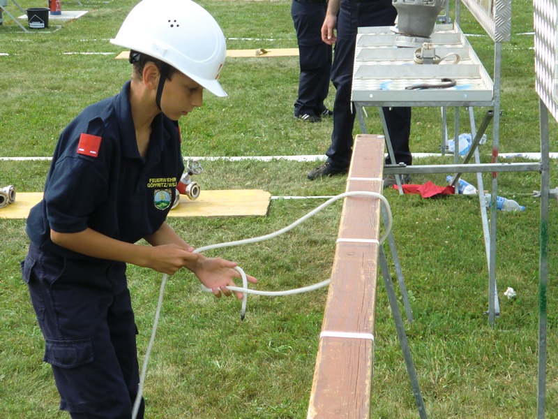 Nach der Ausgestaltung und Einrichtung des Lagerzeltes durch die Feuerwehrjugendmitglieder, welche am Vormittag durchgeführt wurde, hieß es gleich am Nachmittag an den Start zum Bewerb um das Feuerwehrjugendbewerbsabzeichen in Bronze und Silber - hier konnten Manuel in Bronze und Oliver und Alexander in Silber ihr Können unter Beweis stellen.