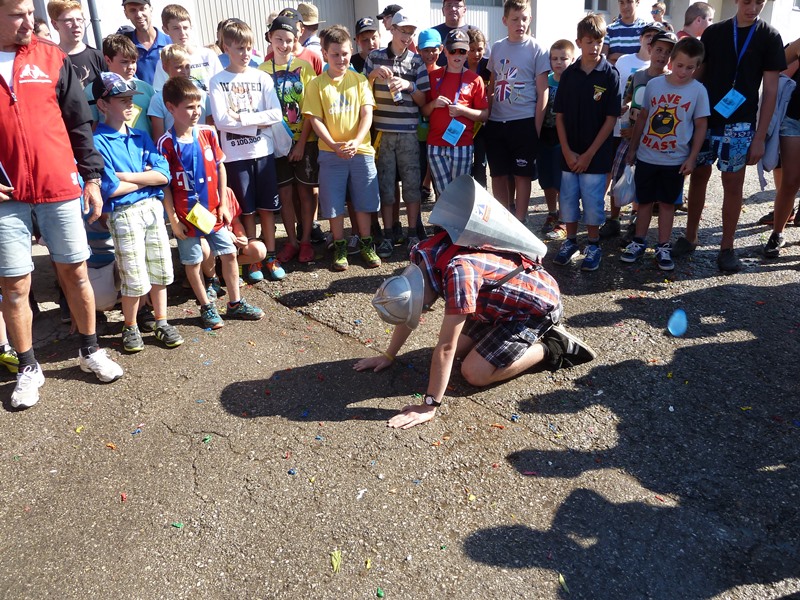 Am Nachmittag gingen die Jugendlichen dann gemeinsam mit den Betreuern die Erlebnistour durch Wolfsbach. Auf einer ca. 5 km langen Tour mussten verschiedene Stationen absolviert werden, so mussten beispielsweise Papierflieger gebaut werden oder Wasserbomben in einen Korb geschossen werden.
