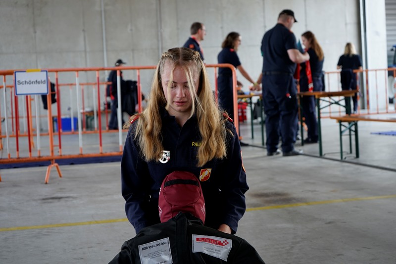 - Verhalten bei Notfällen: Die Teilnehmer müssen bei dieser Station einen Notruf richtig absetzen sowie den Notfallcheck und die stabile Seitenlage an einer Person durchführen können sowie die Bestandteile der Einsatzbekleidung erkennen.