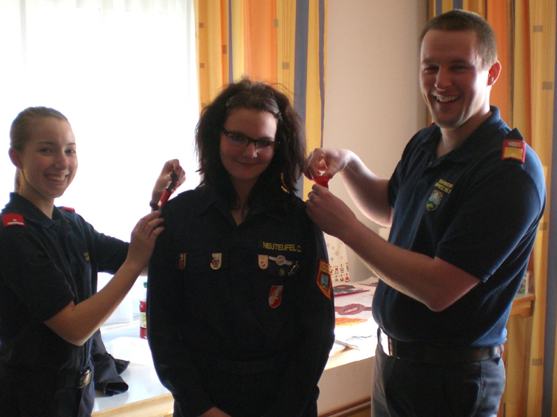 Aufgrund der Tatsache das PFM Hannes Wopienka dieses Jahr bereits in den Aktivstand der Feuerwehr überstellt wurde, musste das "Amt" des "Gruppenkommandanten der Feuerwehrjugend" neu besetzt werden. Daher wählten die neun Feuerwehrjugendmitglieder ihren neuen Gruppenkommandanten. JFM Claudia Neuteufel wurde von der Mehrheit der Jugendmitglieder gewählt und bekam anschließend gleich den neuen Dienstgrad von Feuerwehrkommandant ABI Christian Hübl und Feuerwehrjugendführerin LM Angelika Wopienka überreicht.