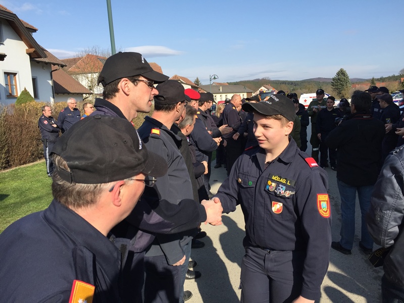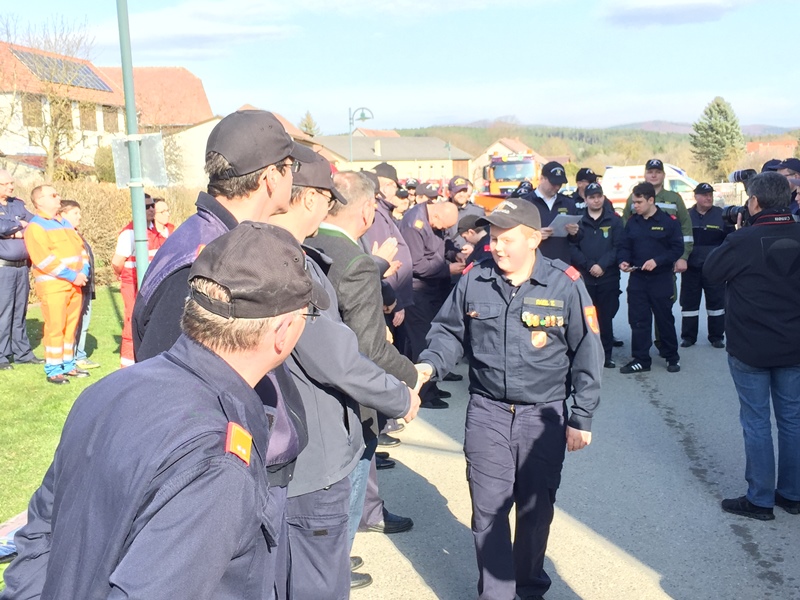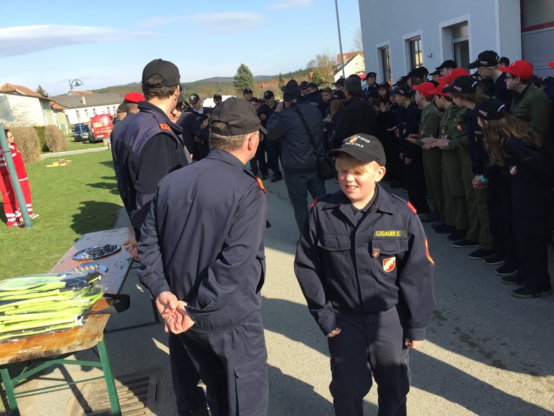 Die Abzeichen wurden den Mitgliedern der Feuerwehrjugend von BFKDT OBR Franz Knapp und LAbg. Franz Mold höchst persönlich überreicht. OBR Franz Knapp würdigte in seiner kurzen und jugendgerechten Ansprache auch das Engagement und den Einsatz der Jugendbetreuer und Ausbilder in den Feuerwehren. Durch dieses Engagement ist ein solcher Erfolg der Feuerwehrjugendmitglieder erst möglich.