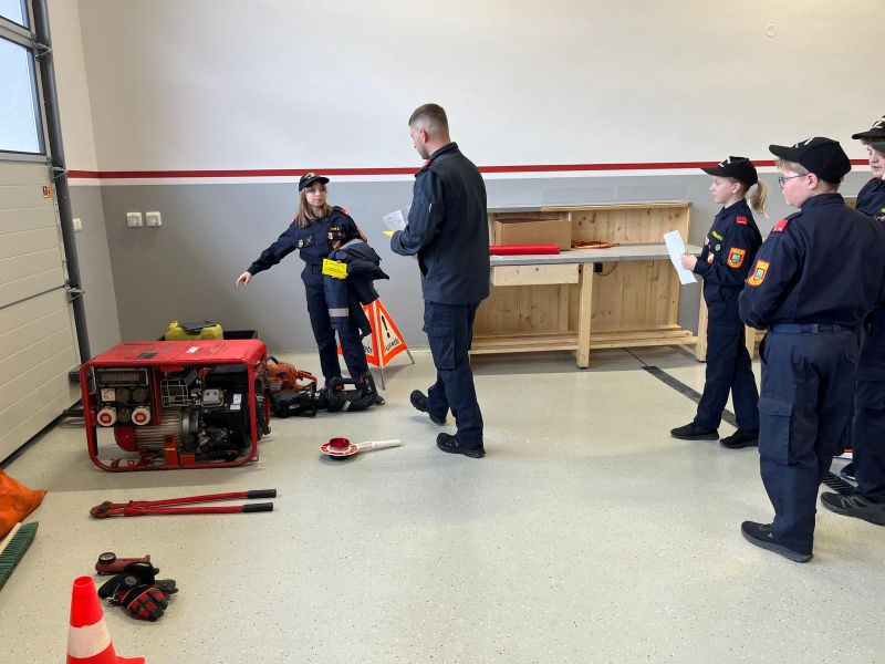Ebenso mussten die Feuerwehrjugendmitglieder auch ihr Wissen über die persönliche Schutzausrüstung, die Warn- und Alarmsignale und dem richtigen Verhalten bei verschiedenen Gefahrensituationen unter Beweis stellen.